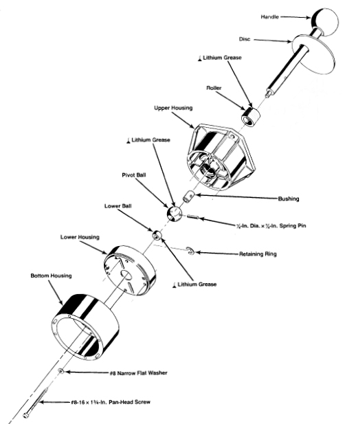 The following are directions about how to replace the roller and the pivot ball. Thinking about dismantling this controller and putting it back together again may seem a bit overwhelming, but just keep the diagrams handy (these diagrams are in the manual as well) and pay attention to what you're doing and you'll get it done in about 30 minutes or so.