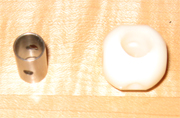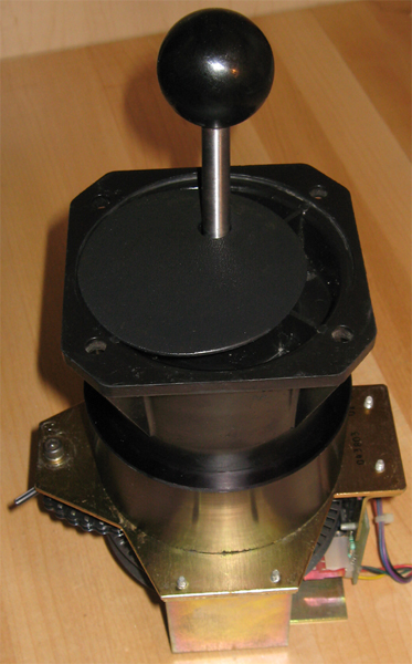 Now it's time to remove the pin keeping the pivot ball (with bushing) in place. I placed the free end of the shaft in a small vise (available at Home Depot, Lowe's, etc.), and used a small tap and hammer and eased it out. You can also make your own device to aid in the pin removal by getting a small piece of wood and drilling a hole through out. Refer to Appendix A below (taken from the Food Fight manual whose joystick also utilizes a roll pin):