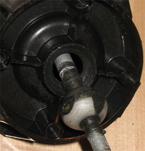 Ok now you can remove the retaining ring and washers that keep the "pivot arm" in place, and remove the hex screws that secure the bottom housing plate to the bottom housing. Once that's done you'll most likely be looking at a pivot ball and a upper housing that looks like this: