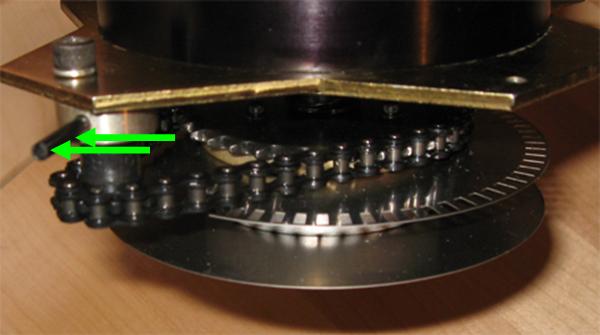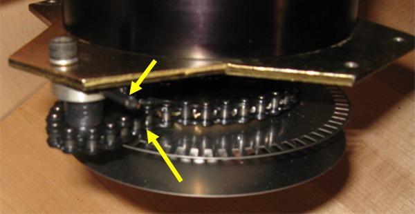 Test the controller now by moving it around in both directions. If it's not smooth or if it catches, you have the chain too tight. When you've got it perfect, now it's time to tighten the hex screw but again DO NOT over tighten. If it's too tight it will keep the sprocket from moving period. Again, experiment to find the perfect tension.