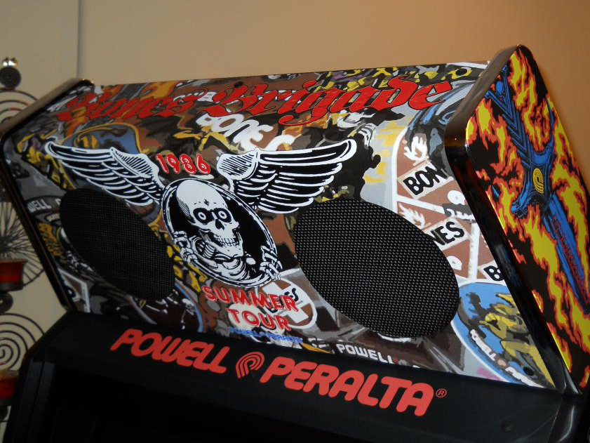 sides with deck art from Tony Hawk and Tommy Guerrero, main cabinet side art with the